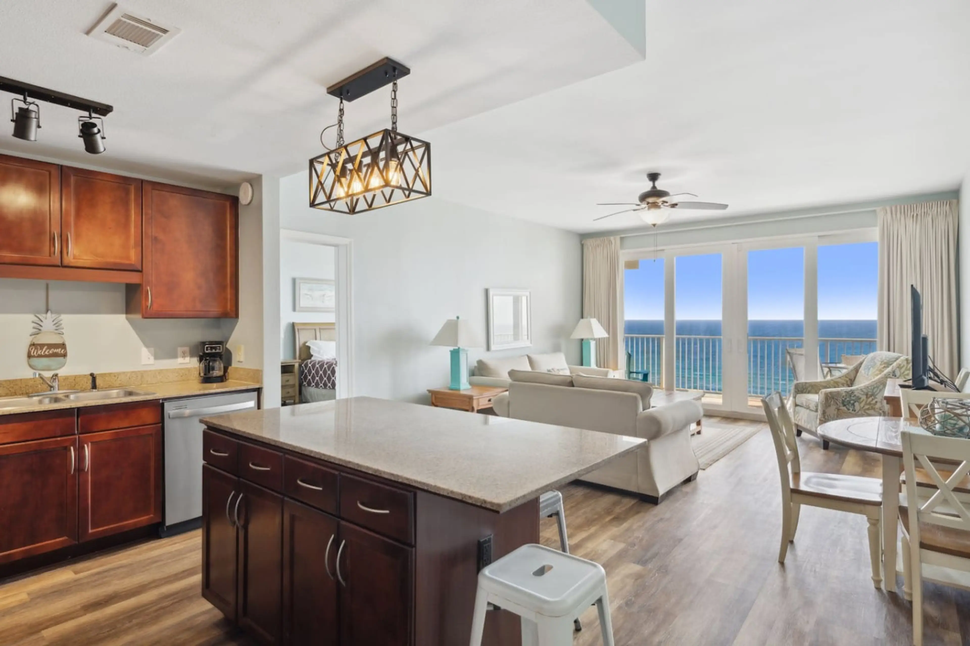 Welcome to Laketown Wharf 1707! OCEAN VIEW - At this high-rise, 17th floor getaway, it's all about the view, and it doesn't get better than this! The breathtaking emerald water of the Gulf and its sugary beach are experienced from the large balcony, primary bedroom and living room. The kitchen is a...