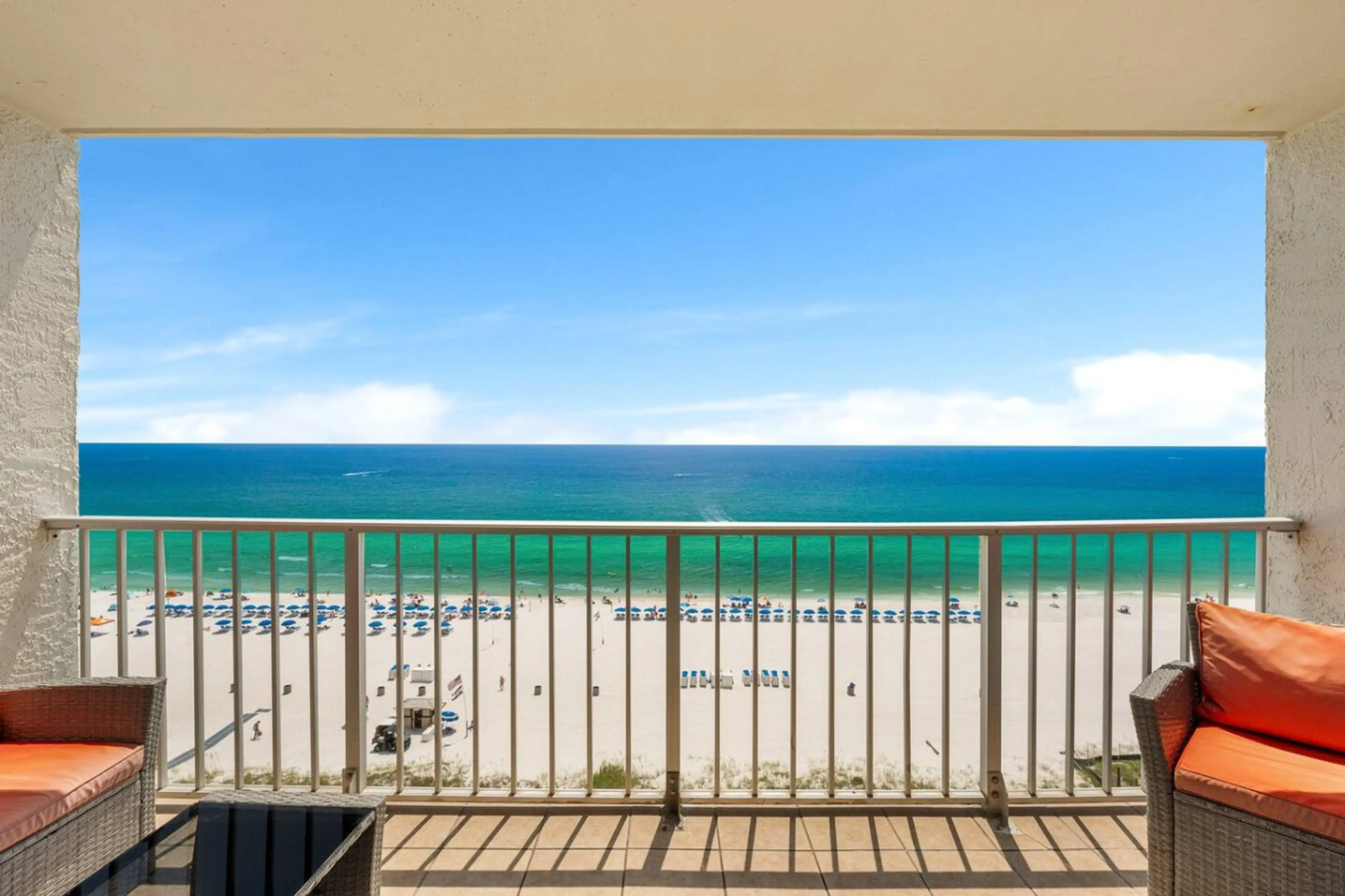 Welcome to SUMMIT 1105! Located on the 11th floor, this beautiful beachfront condo with a balcony facing the white sand beaches and Gulf of Mexico comfortably accommodates up to six individuals, with a king bed in the bedroom, a pair of bunk beds recessed in an alcove in the hallway, and a queen si...